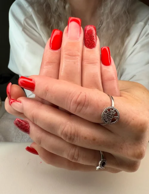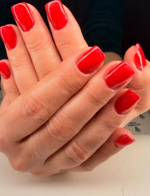 Precizní manikúra zakončená aplikací gellaku pro delší výdrž a lesk.